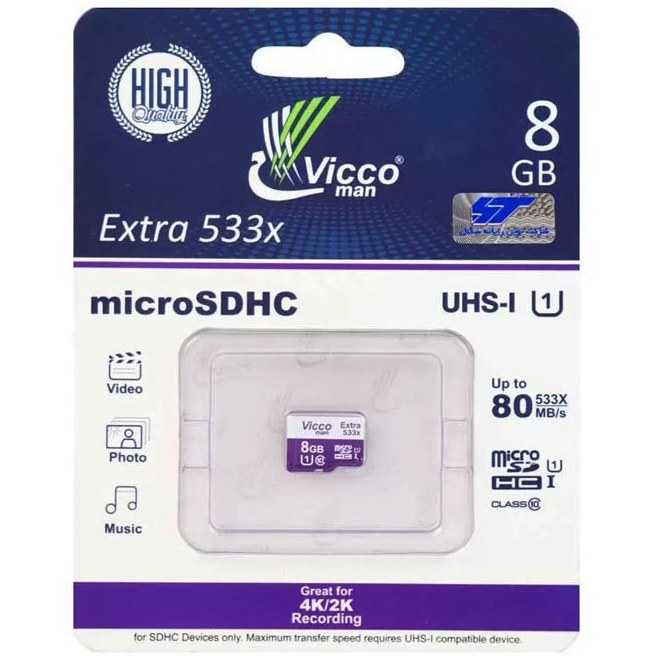 برندViccoوزن2 گرمنوع کارت حافظهmicroSDظرفیت حافظه8 گیگابایتسرعت خواندن80مگابایت بر ثانیهاستانداردUHS-I U۱