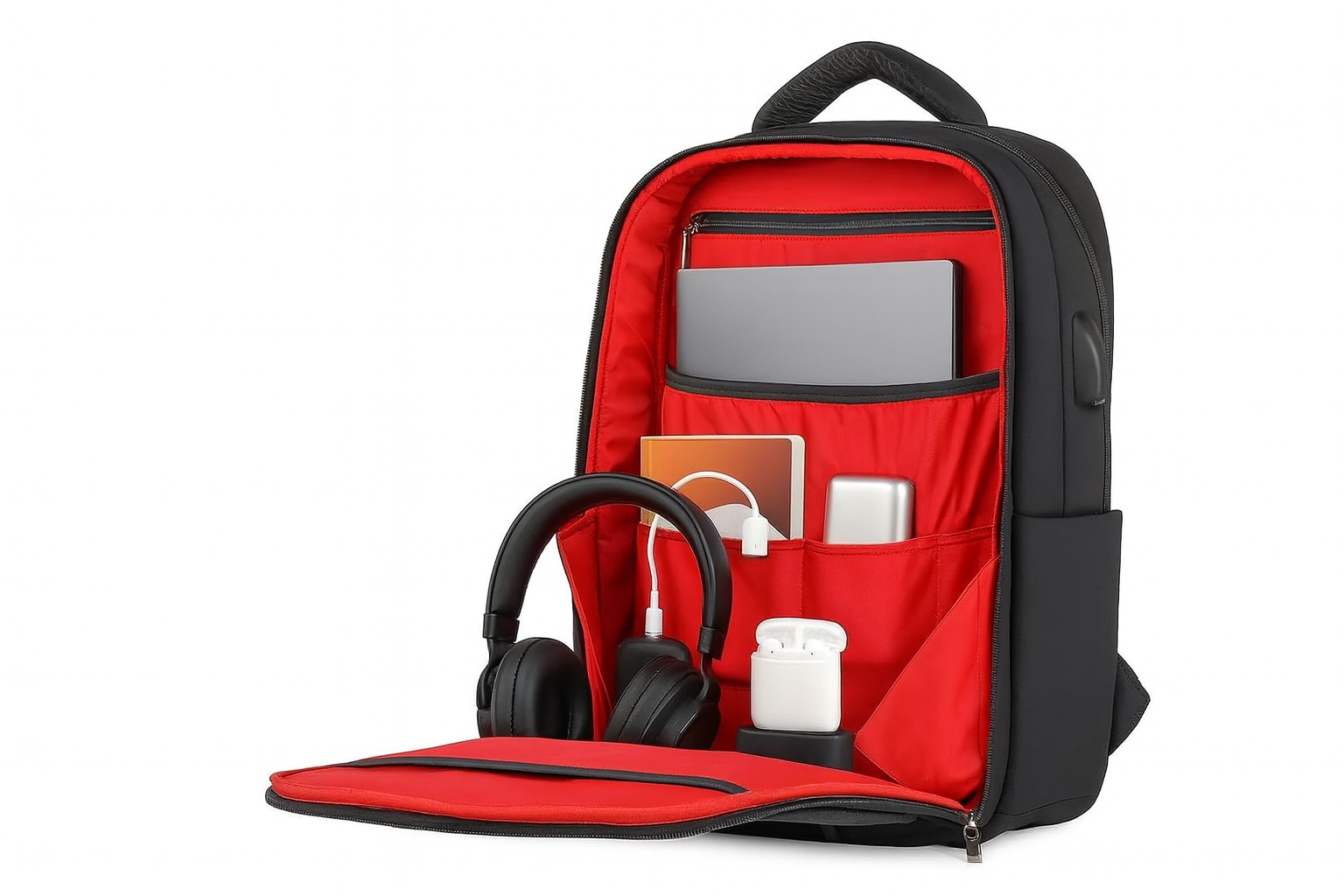 بخشبندی جادار شامل جیب مخصوص تبلت، دفترچه، پاوربانک، هندزفری، هارد و سایر وسایل روزمره. -