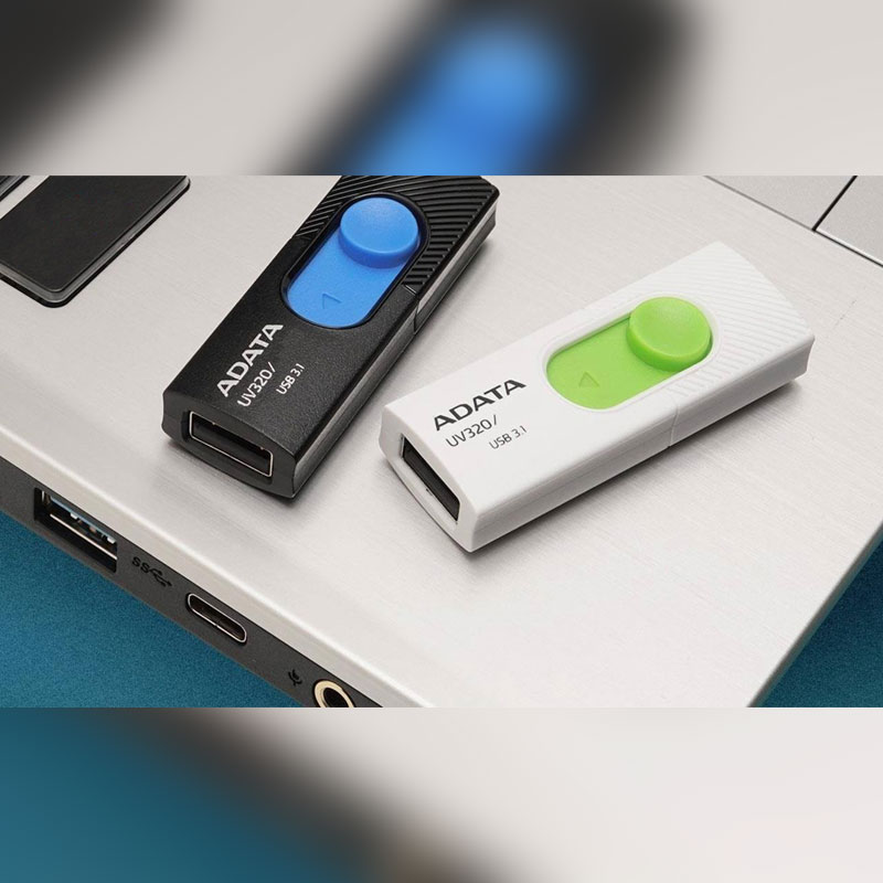 مدل «UV320» از سری محصولات فلش میموری شرکت «ای دیتا» (ADATA) است که در ظرفیتهای 8 تا 128 گیگابایتی و در رنگهای مختلف عرضه میشود. این فلش میموری از حافظه 64 گیگابایتی بهرهمند است؛ با این مقدار ظرفیت، حجم بسیار زیادی از اطلاعات؛ از قبیل موسیقی، فیلم و … را میتوانید همیشه در کنار خود داشته باشید . در راستای طراحی جمعوجور، شرکت ای دیتا بر روی UV320 یک کلید تعبیه کرده است که با فشار دادن آن به جلو، درگاه USB به بیرون هدایت میشود.