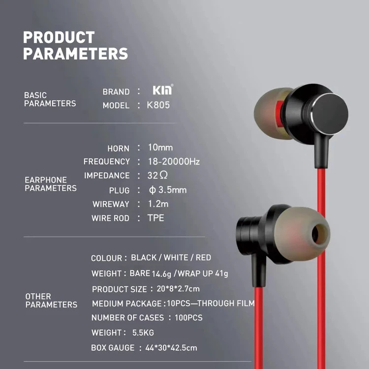 هندزفری کین KIN مدل K-805 که سیم دار بوده یک محصول فوق العاده با کیفیت ، با طراحی ارگونومیک و در عین حال با قیمت مناسب است. این هندزفری از یک جک 3.5 میلی متری برای اتصال به گوشی استفاده می کند. این هندزفری می تواند به انواع دستگاه های هوشمندی که از جک 3.5 میلیمتری بهره میبرند متصل شود. هندزفری در برابر رطوبت و عرق بسیار مقاوم است. ساختار هندزفری KIN مدل K-805 بسیار متناسب با ساختار گوش خواهد بود.