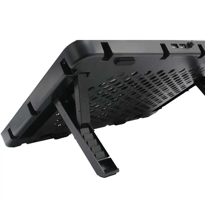این کول پد از طریق پورت USB لپ تاپ تغذیه میشود و همراه آن یک کابل USB ارائه میشود. همچنین دو پورت USB اضافه برای اتصال دستگاههای جانبی وجود دارد.